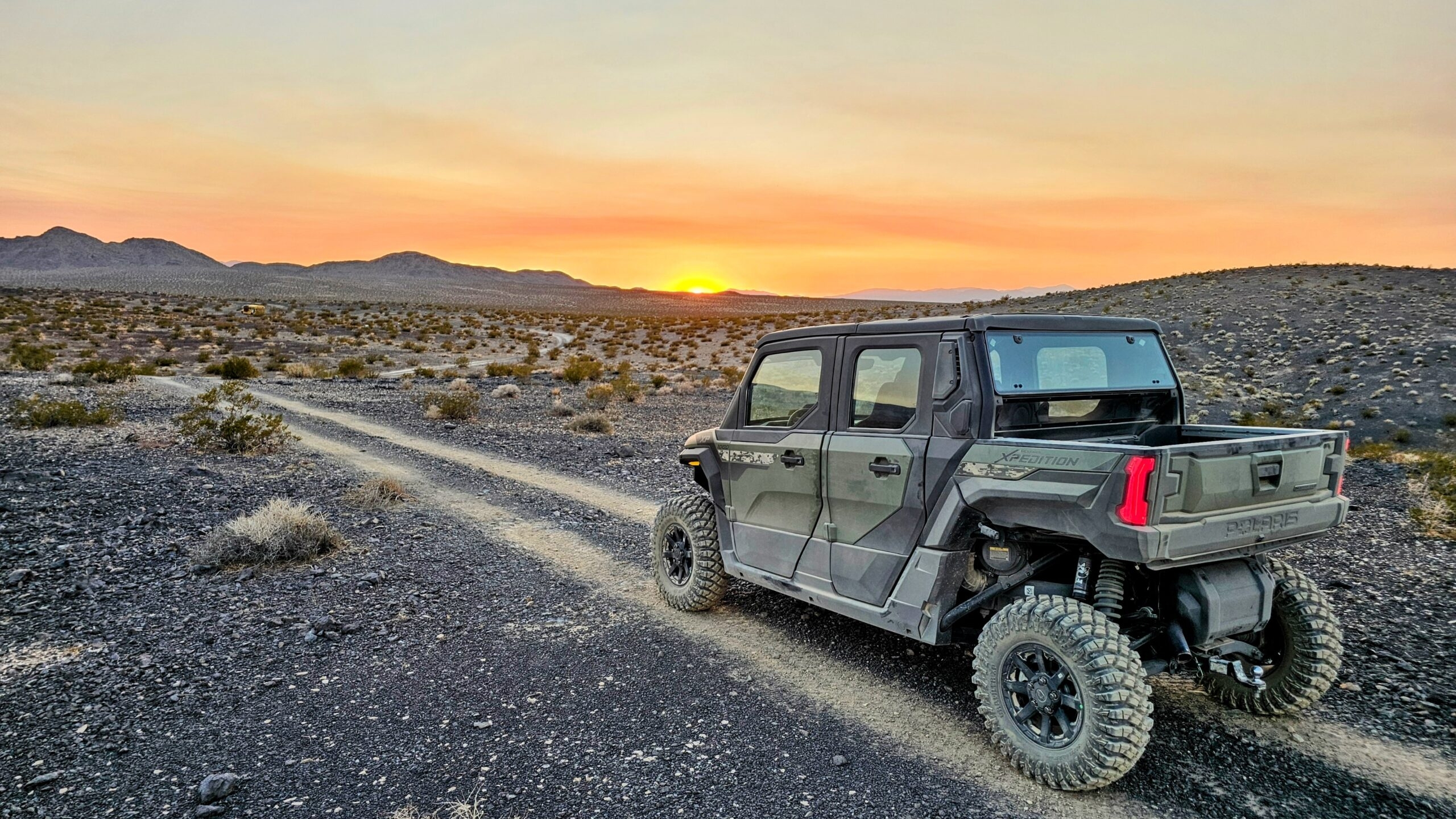 Your experience begins late in the afternoon as you climb into a premium Polaris Xpedition NorthStar—fully enclosed with a glass windshield, electric windows, air conditioning, and heat for year-round comfort. Guided by your private tour leader, you’ll travel across remote desert terrain to a secluded high-desert viewpoint just in time to watch the sun melt into the vast horizon. Here, stress quiets, the world slows down, and nature takes center stage.