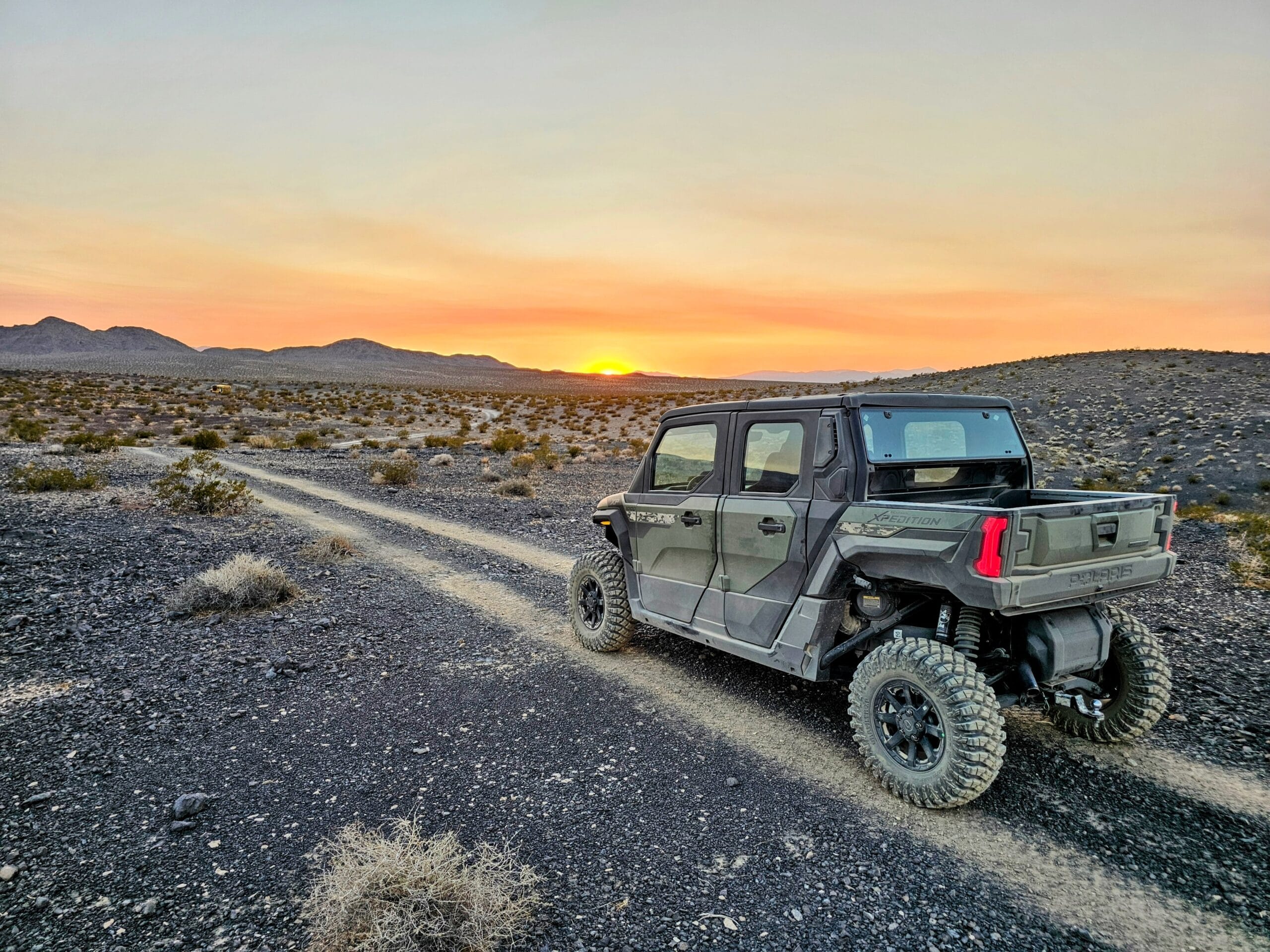 Your experience begins late in the afternoon as you climb into a premium Polaris Xpedition NorthStar—fully enclosed with a glass windshield, electric windows, air conditioning, and heat for year-round comfort. Guided by your private tour leader, you’ll travel across remote desert terrain to a secluded high-desert viewpoint just in time to watch the sun melt into the vast horizon. Here, stress quiets, the world slows down, and nature takes center stage.